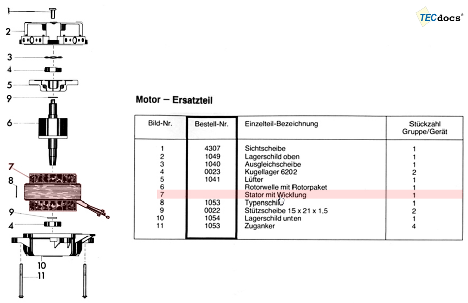 Im rechts stehenden Demo-Film ist eine Ersatzteilliste für einen Motor dargestellt, die Identifizierung des Ersatzteils ist durch die Flash-Programmierung fehlerfrei möglich. Die Auswahl ist für die Ersatzteilliste sowie für die Motorzeichnung programmiert.
